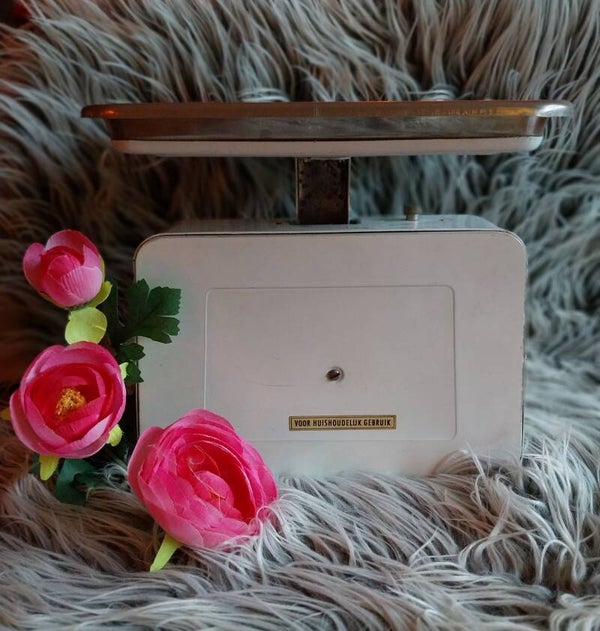 Instant vintage vibes, met deze werkende witte industrial look keuken weegschaal van Stuber.